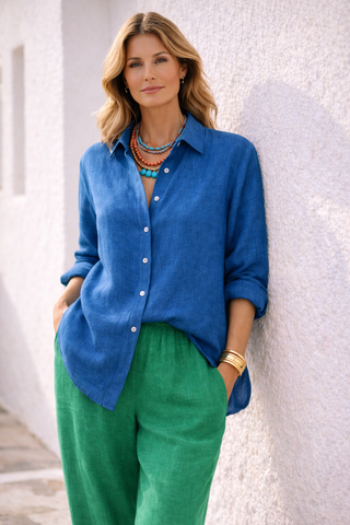 NARLA Sky Blue Linen Shirt – Effortless Mediterranean Elegance