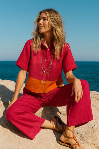 TESSERE Fuchsia Sunset Pure Natural Linen Shirt