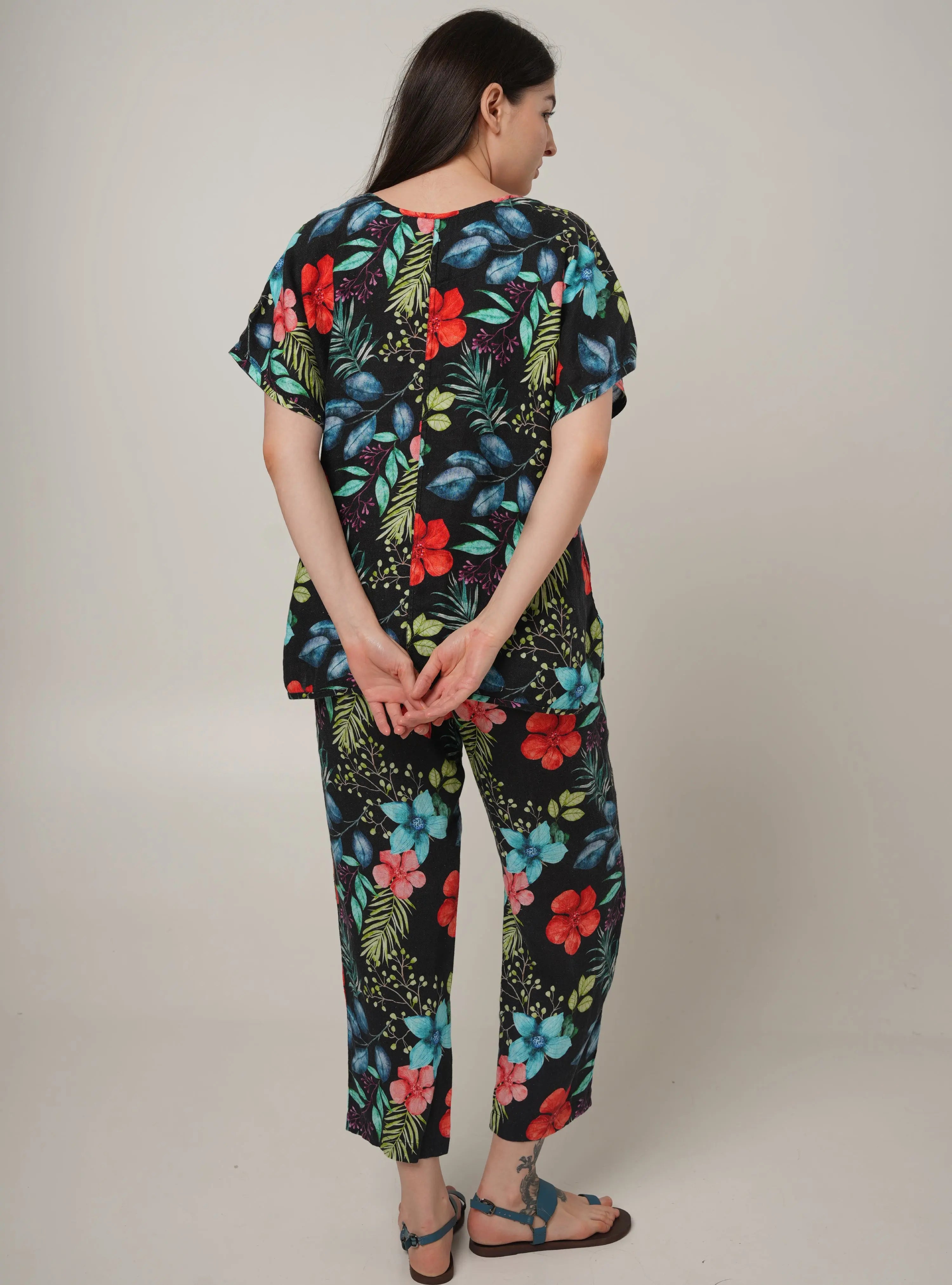 NEO PURE NATURAL LINEN TROPICAFLORAL OASIS CO-ORD SET