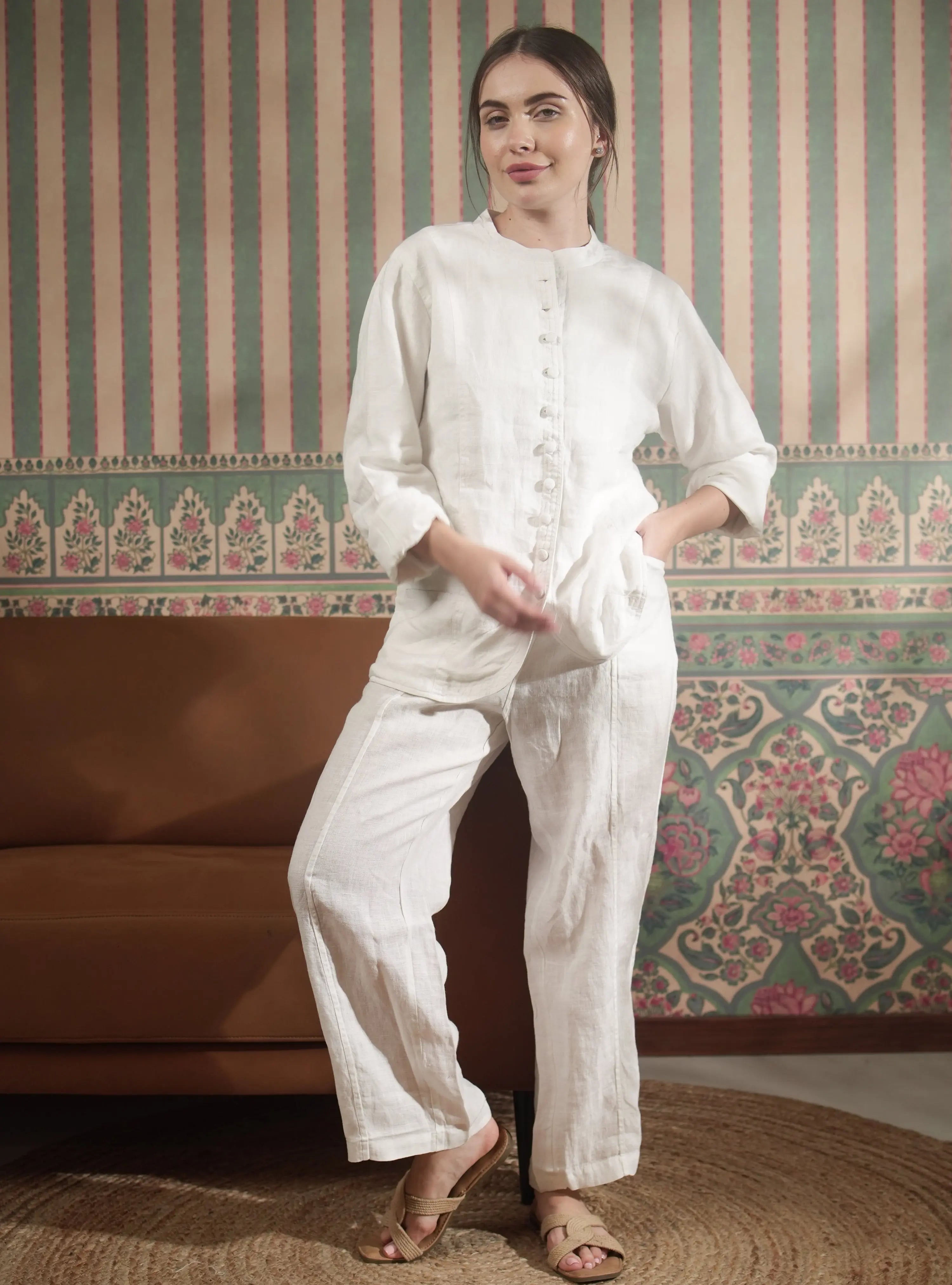 • The HAZEL Pure Natural Linen Princess Cut Front Pocket Pant offers a stylish and comfortable fit with a flattering princess cut design. Made from high-quality natural linen, it ensures breathability and a lightweight feel for all-day wear. The front pockets add practicality while maintaining a chic, contemporary look.