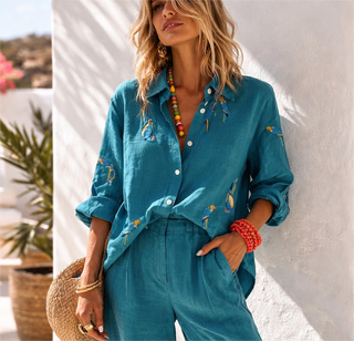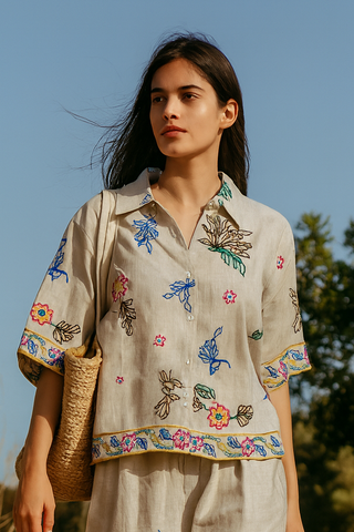 MEDITERRANEAN PREMIUM LINEN BLEND CLASSIC EMBROIDERED CO-ORD SET