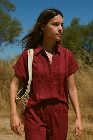 MAROON PREMIUM LINEN BLEND CLASSIC EMBROIDERED CO-ORD SET