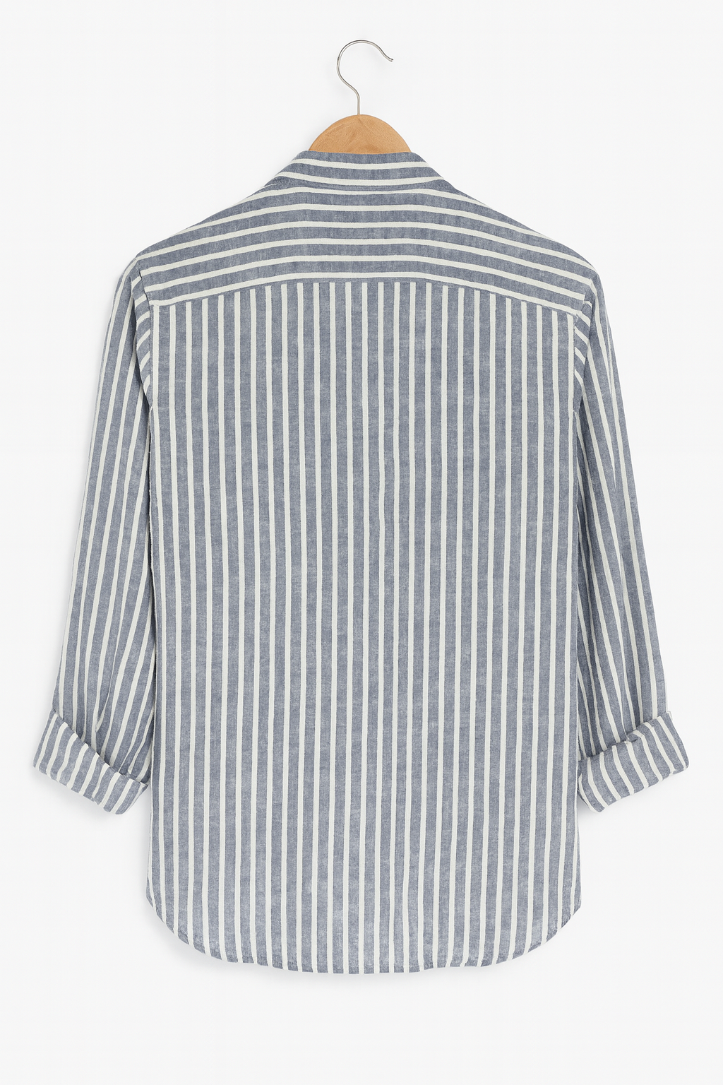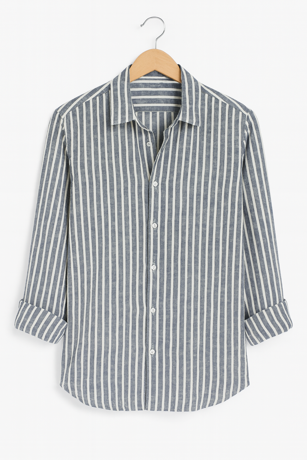 Crafted from premium natural linen, this tailored fit shirt captures the relaxed sophistication of Mediterranean style. The striped pattern adds visual depth while maintaining understated elegance. Each piece is meticulously constructed to drape beautifully and develop character with wear. Perfect for warm-weather occasions—from casual weekends to refined dinners—this versatile staple pairs effortlessly with tailored trousers or linen shorts. The breathable fabric ensures comfort in any climate, while the refined tailoring delivers a polished silhouette that transcends seasonal trends.