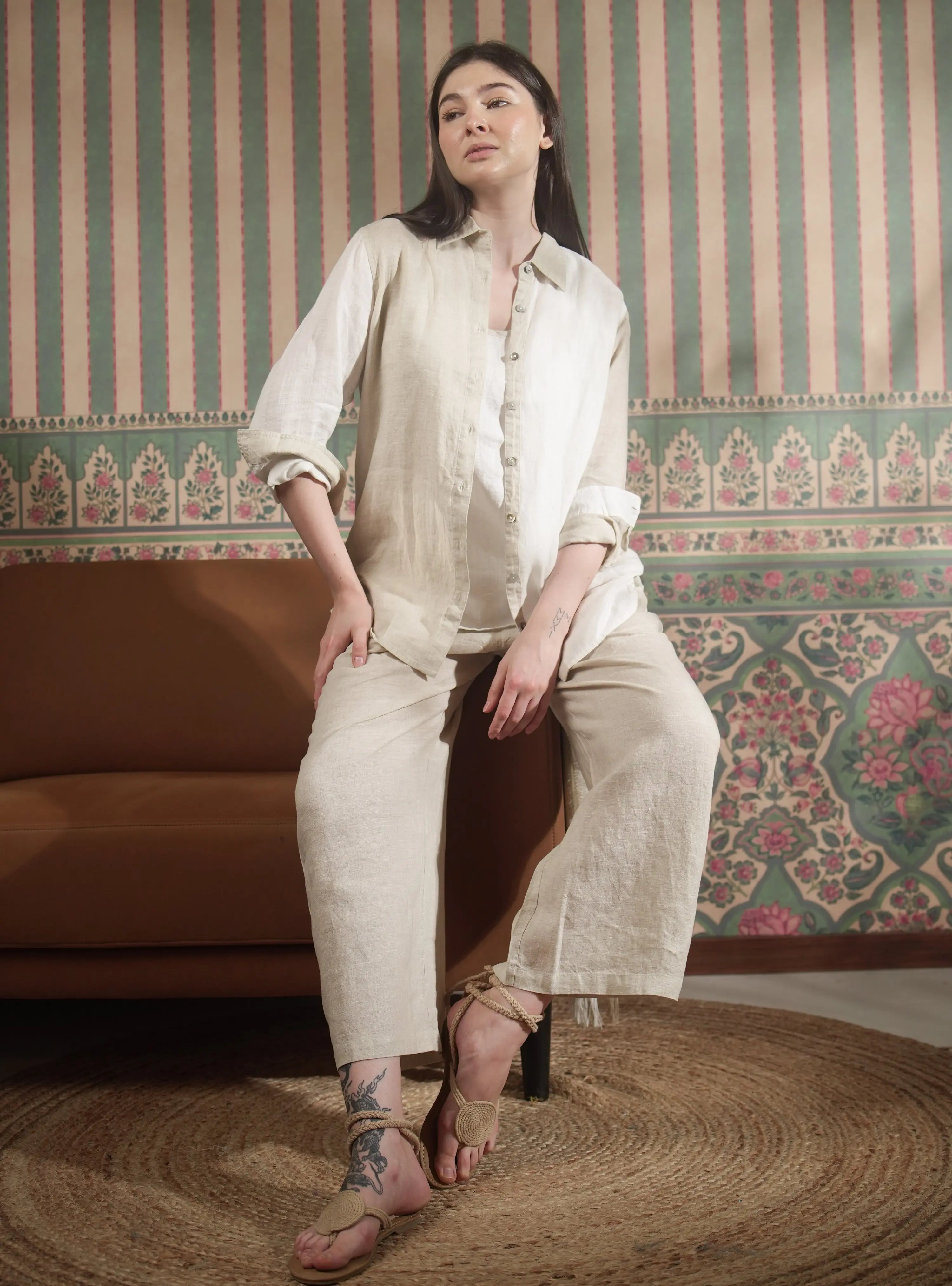 NARLA PURE NATURAL LINEN COLOR BLOCK CLASSIC SHIRT