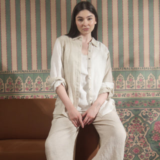 Each garmentis meticulously prewashed and pre-shrunk, featuring double-stitched seams crafted from 140 gsm (5 Oz) sumptuous linens, adorned with premium all-natural buttons made from horn or wood, ensuring unparalleled quality.