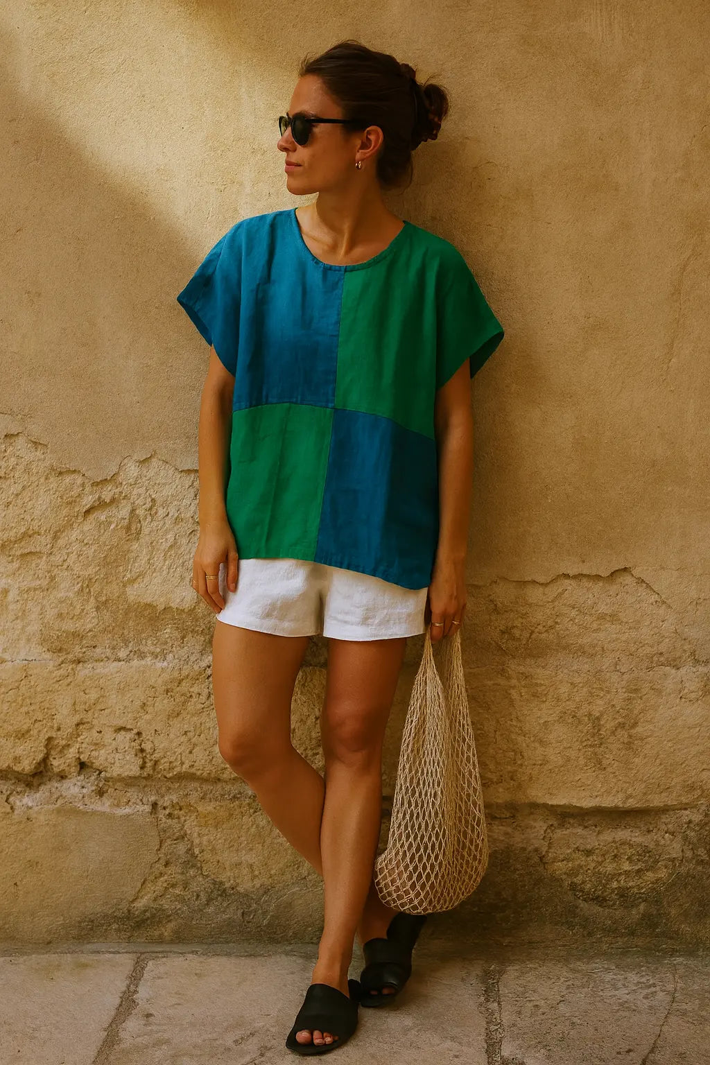 The Vesala Pure Natural Linen Color Block Oversized Tunic is a stylish and comfortable piece, designed with a relaxed fit. Crafted from pure natural linen, it features bold color-block detailing for a modern and chic look. Perfect for casual outings, this tunic offers both breathability and sophistication.