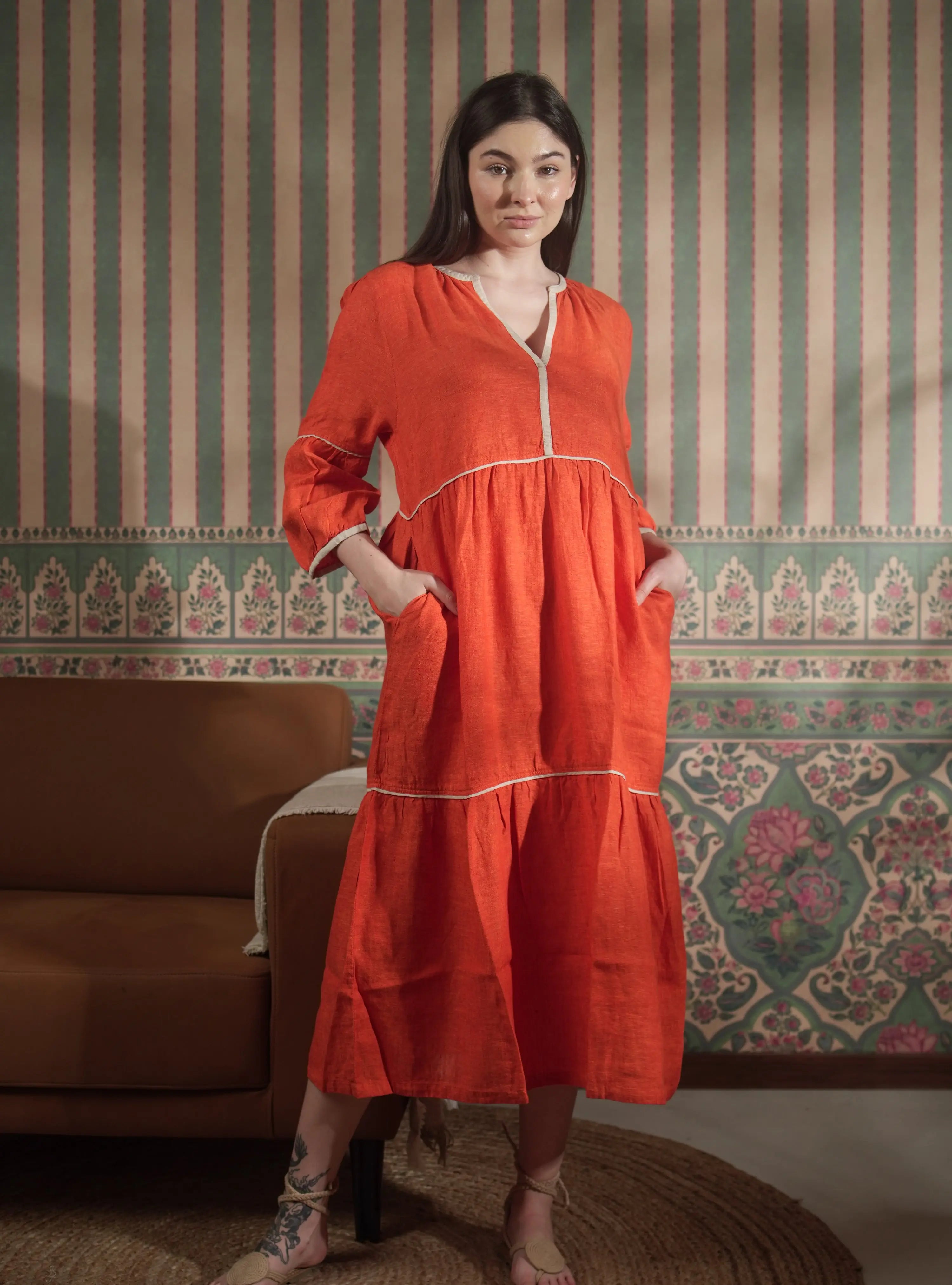 The Oliva Pure Natural Linen Solid Color Long Tier Dress is a stylish and elegant garment made from high-quality linen fabric. Featuring a simple solid color design, this dress offers a comfortable, breathable fit perfect for any occasion. Its tiered style adds a touch of sophistication and flow, making it an ideal choice for relaxed yet fashionable looks.