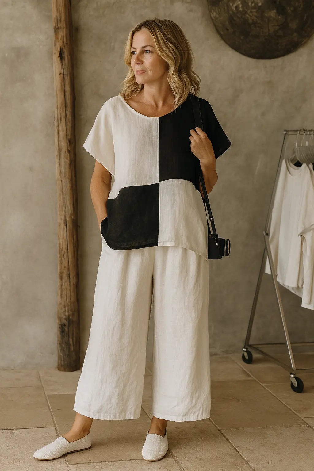 The Vesala Pure Natural Linen Color Block Oversized Tunic is a stylish and comfortable piece, designed with a relaxed fit. Crafted from pure natural linen, it features bold color-block detailing for a modern and chic look. Perfect for casual outings, this tunic offers both breathability and sophistication.